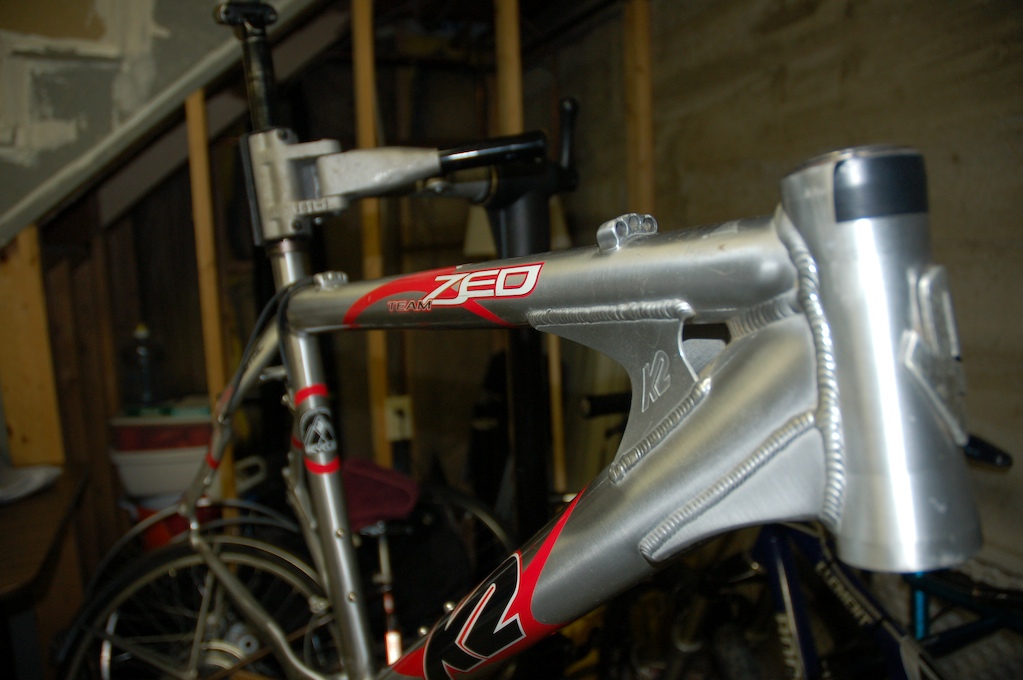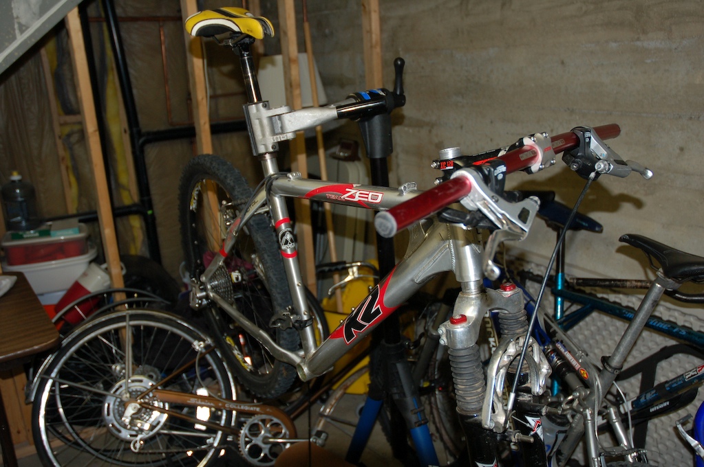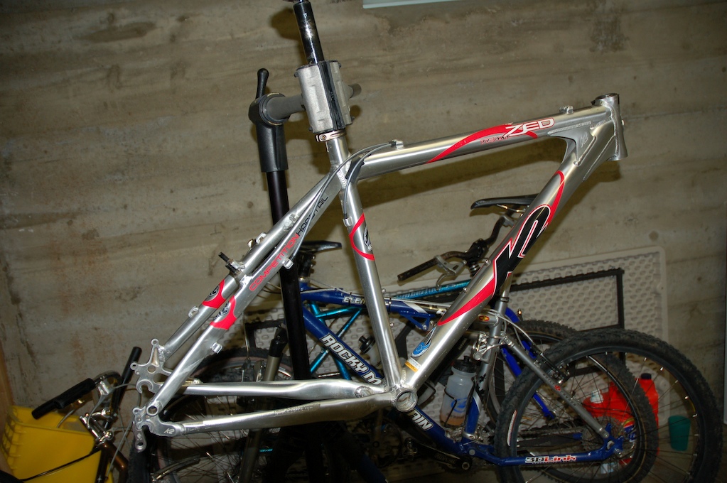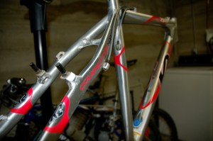 So my old K2 Zed Team hardtail is going to have a new life soon…J-Bird will be taking ahold of this sweet ride. I rode this bike in 20+ races in 2002/2003 and it has since taken over my closet. Hopefully I can find enough time (and the right bike parts) to have this sled running before I fly to SF on Thursday. Here are some pics from the project: